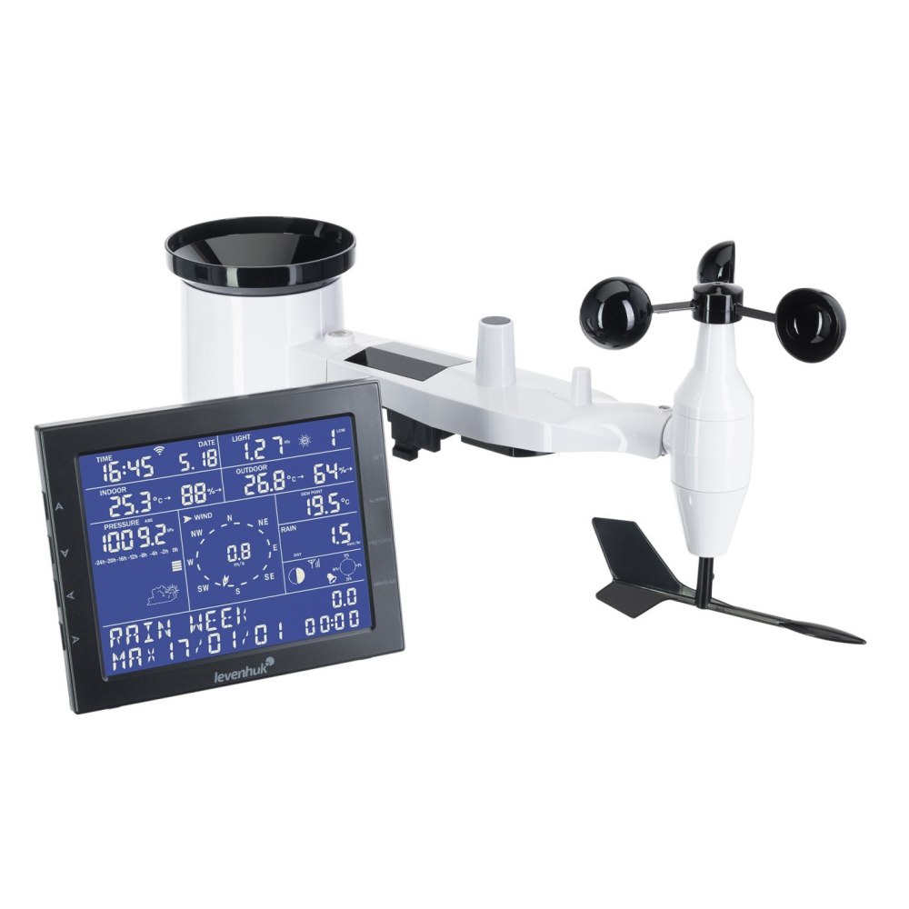 A Levenhuk Wezzer PRO LP330 kitűnik a professzionális készülékek széleskörű funkcióival és egyszerű kezelhetőségével, ami kiváló választássá teszi azok számára, akik szeretnék mélyrehatóan nyomon követni a kültéri időjárást és a beltéri légkört. Rögzíti és tárolja a kül- és beltéri levegő hőmérsékletét és páratartalmát, valamint tájékoztatja tulajdonosát a légköri nyomásról, a csapadék mennyiségéről, a szél irányáról és sebességéről, az ultraibolya sugárzásról és a harmatpontról. Emellett az állomás képes helyettesíteni az órát, az ébresztőórát és a holdfázisokkal ellátott naptárat. Az időjárás-előrejelzés funkciót minden felhasználó számára nagyon hasznosnak találja majd.