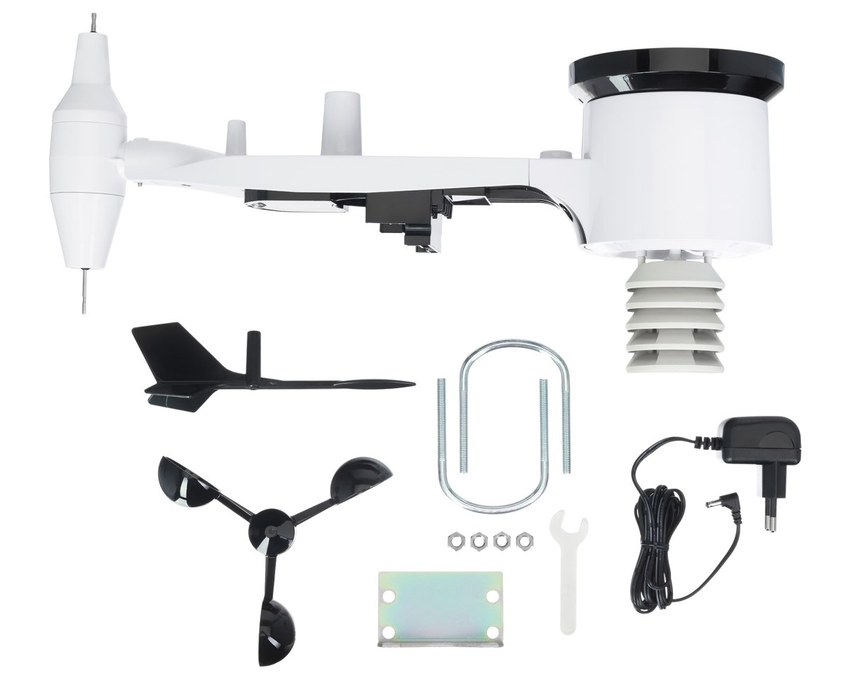 Funkciók: óra, naptár, ébresztőóra, hőmérő, légnyomásmérő, páratartalom-mérő, anemométer/szélérzékelő, csapadékmérő, időjárás-előrejelzés, holdfázisok, harmatpont-érzékelő, hőindex, UV-index, fényerősség és Wi-Fi. A készlet tartalmazza a távérzékelőt